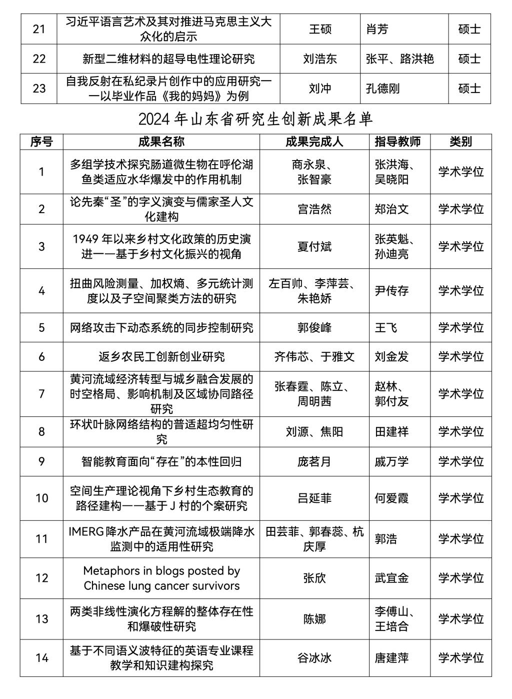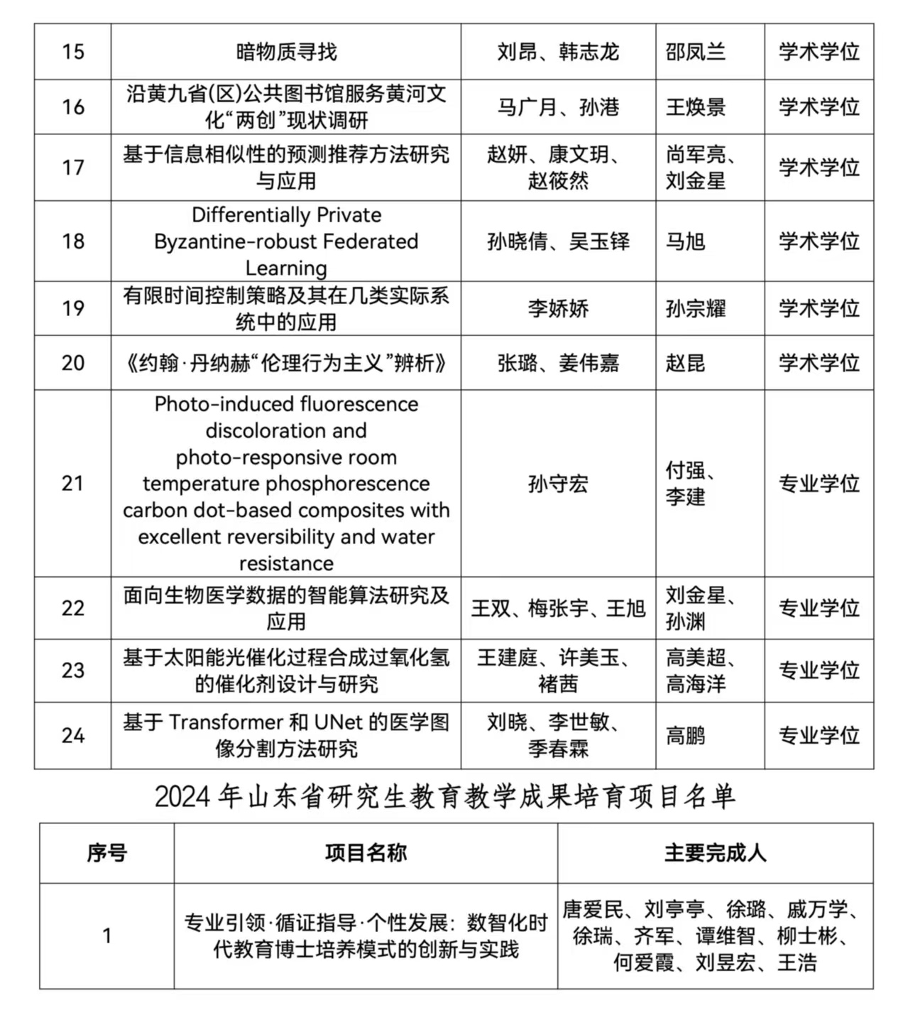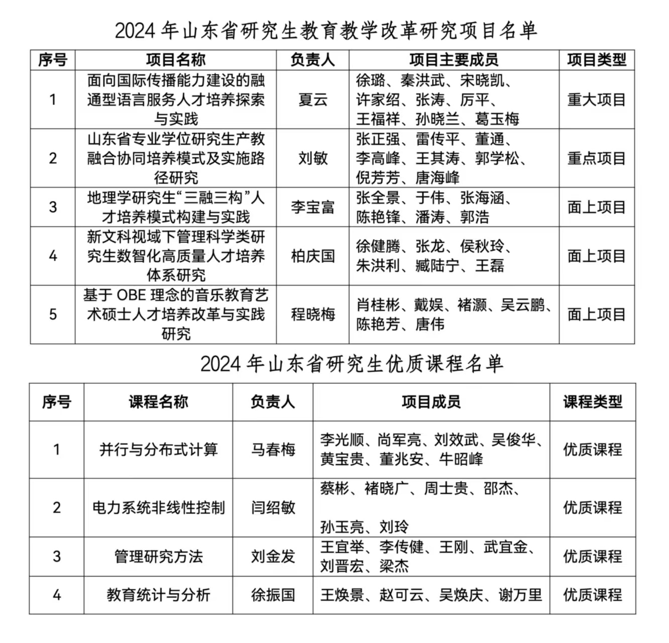 曲阜师大在2024年山东省研究生教育教学资源建设项目中取得重大突破
