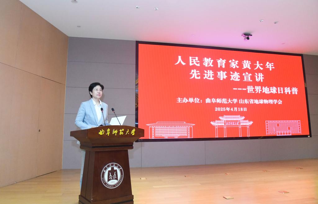 党委宣传部讯 4月18日,曲阜师大举行弘扬践行教育家精神报告会第一讲,与山东省地球物理学会联合组织开展“人民教育家”黄大年先进事迹宣讲活动。中国科学院院士、地球物理学家滕吉文,中国地球物理学会副秘书长、高级工程师胡敏,教育部教育家精神宣讲团成员、吉林大学地球探测科学与技术学院教授于平,曲阜师大党委副书记、校长张洪海,党委副书记李志红等出席活动。