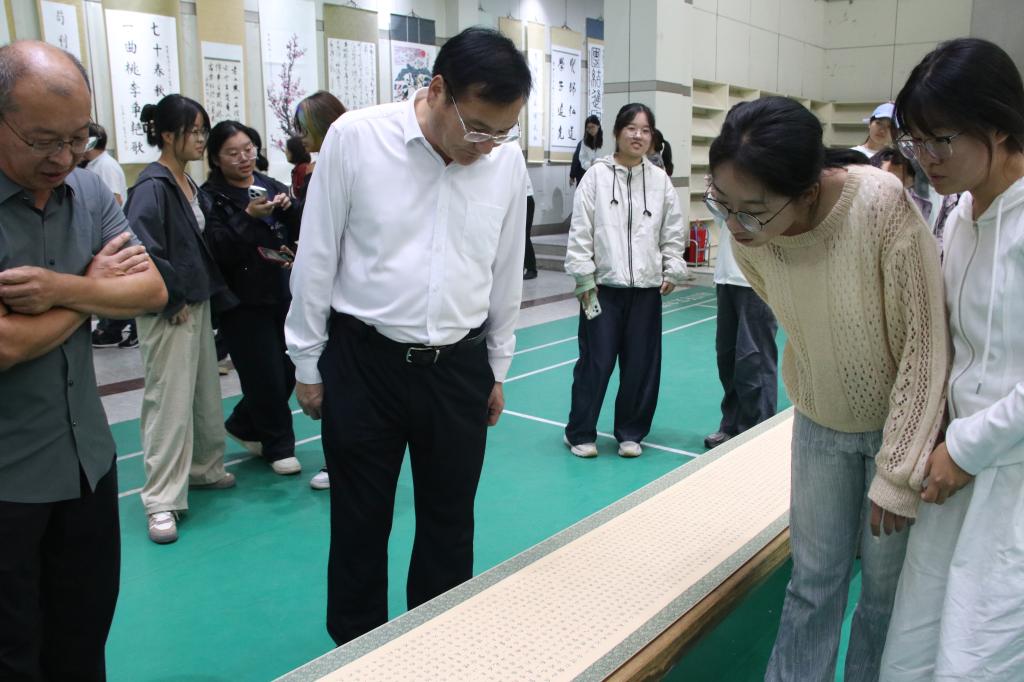 退休教师杜春生在代表发言中表示,此次书画展是离退休老同志献给学校70华诞的一份深情厚礼,既致敬孔孟之乡的文化传承,也映照曲园七十载育人初心。老同志们以书画言志、以笔墨寄情,作品之中浸润着对教育事业的眷念与对校风校训的践行,衷心祝愿母校薪火永续、再谱华章。