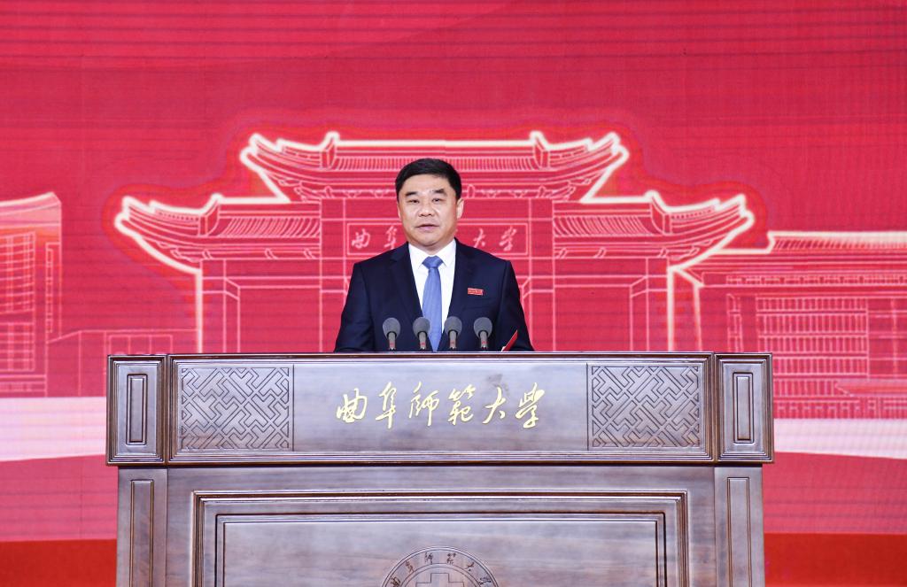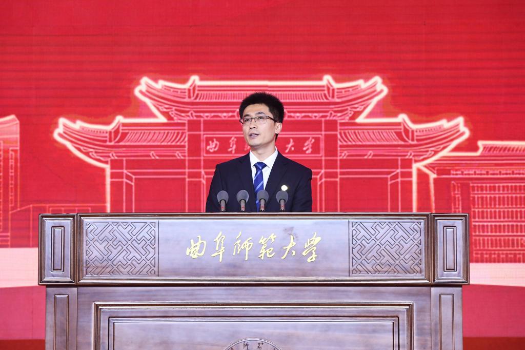 国家级青年人才、曲阜师范大学物理工程学院教授刘晓兵作为教师代表发言,他表示,老一辈曲园人的光辉足迹令人自豪,一代代曲园人对于“办好教育”的执着,引领和激励着新时代曲园人接力奔跑、勇毅前行。