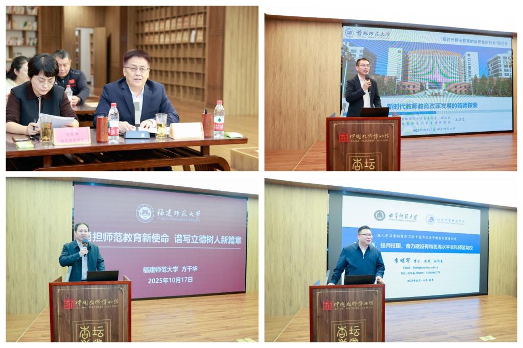 科学技术处、社会科学处讯 10月17日,“新时代师范教育的新使命新担当”研讨会在曲阜师范大学举办。首都师范大学、福建师范大学、淮北师范大学、云南师范大学等20余所高校负责人参加会议。教育部教师工作司有关同志作专题报告,曲阜师范大学党委副书记、校长张洪海致辞,党委常委、副校长胡凡刚主持研讨会。