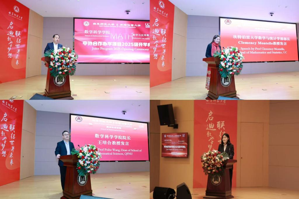 数学科学学院院长王培合教授介绍了数学科学学院的发展史及办学70年来的辉煌成就,并向与会师生介绍了中外合作办学项目的教学理念与培养目标。坎特伯雷大学数学与统计学部部长Clemency Montelle教授介绍了坎特伯雷大学数学与统计学部的优势和学科专业实力,期待通过该项目深化两校合作,推动数学学科领域的学术交流与人才联合培养。