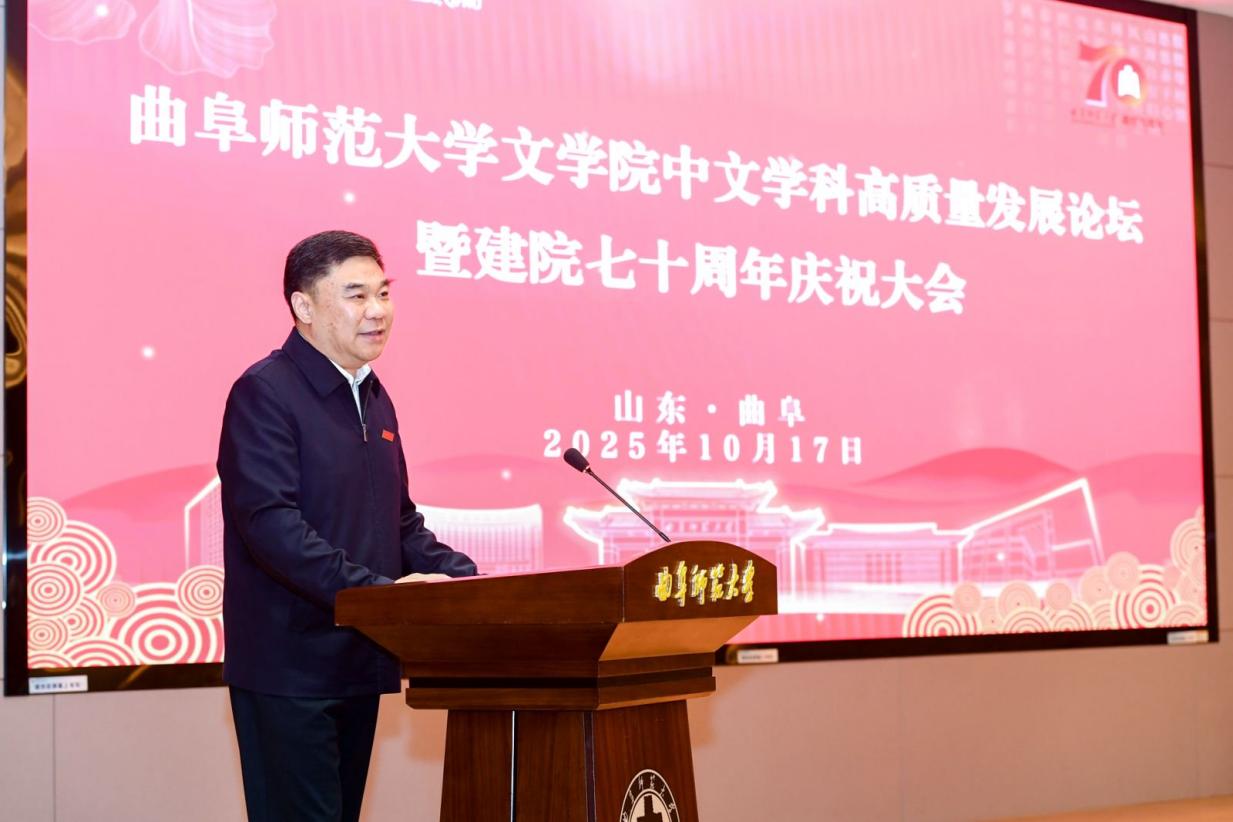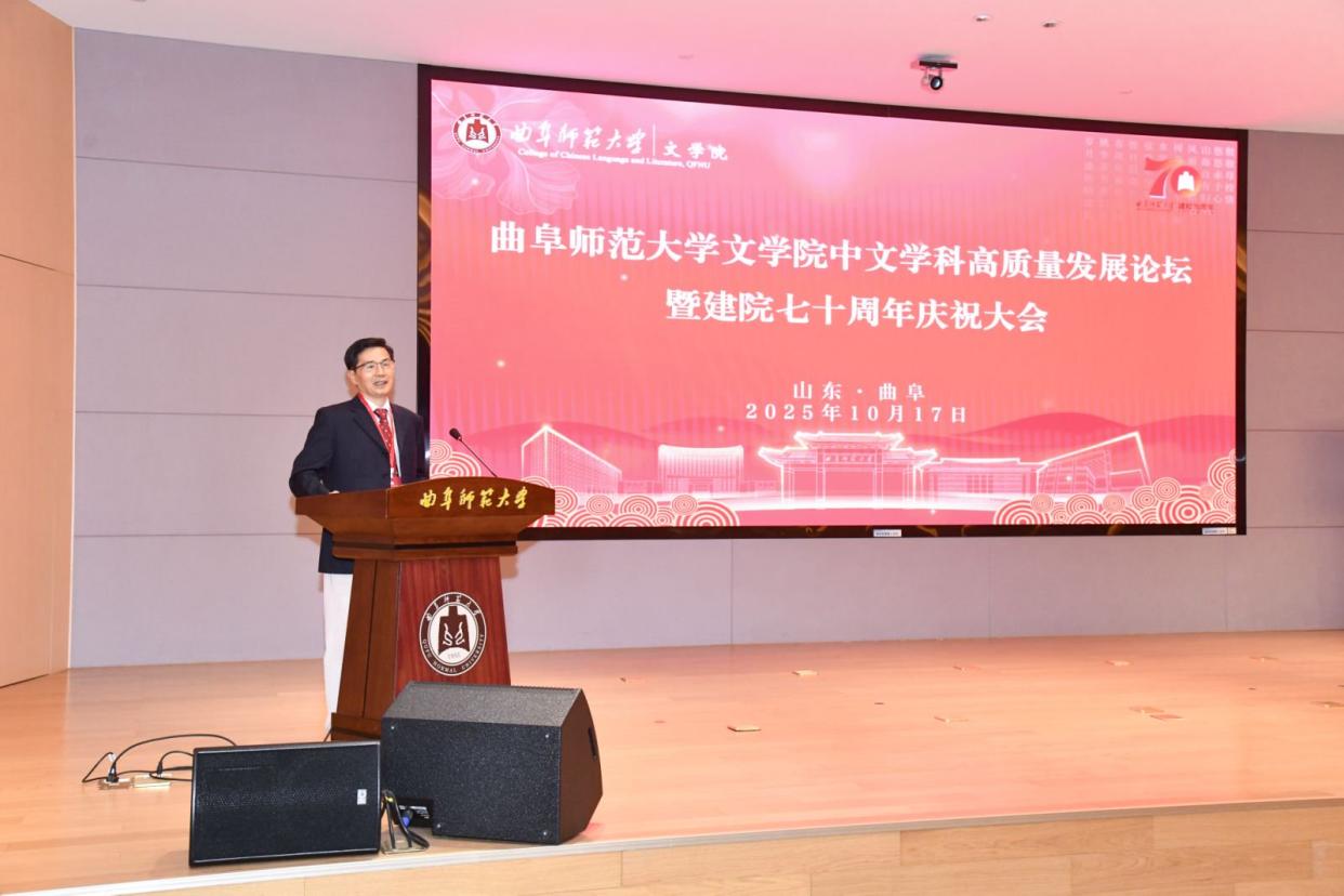 文学院讯 洙泗之地,斯文在兹。七秩弦歌,惟其有章。名师荟萃,桃李芬芳。10月17日,曲阜师大中文学科高质量发展论坛暨文学院建院七十周年庆祝大会隆重举行。各级领导、嘉宾、校友和师生代表齐聚一堂,共同回顾学院七十年来的发展成就,探讨和展望中文学科高质量发展的未来。