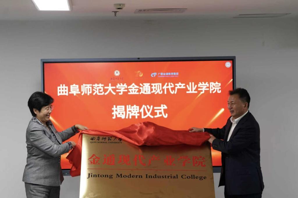 音乐学院讯 为了深化产教融合,促进教育高质量发展,近日,金通现代产业学院揭牌仪式在曲阜师范大学举行。曲阜师范大学党委副书记李志红,广慧金通教育科技有限公司董事长焦殿成,山东区总经理王艳霞等出席仪式。