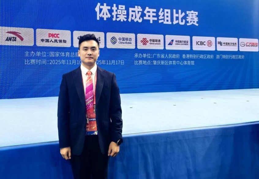 武术比赛中,体育科学学院老师樊腾飞受邀担任技术代表;体操成年组比赛中,体育科学学院教师、国际级体操裁判于良担任裁判员。两位教师以专业素养与公正执裁,展现了学校教师的专业风采。