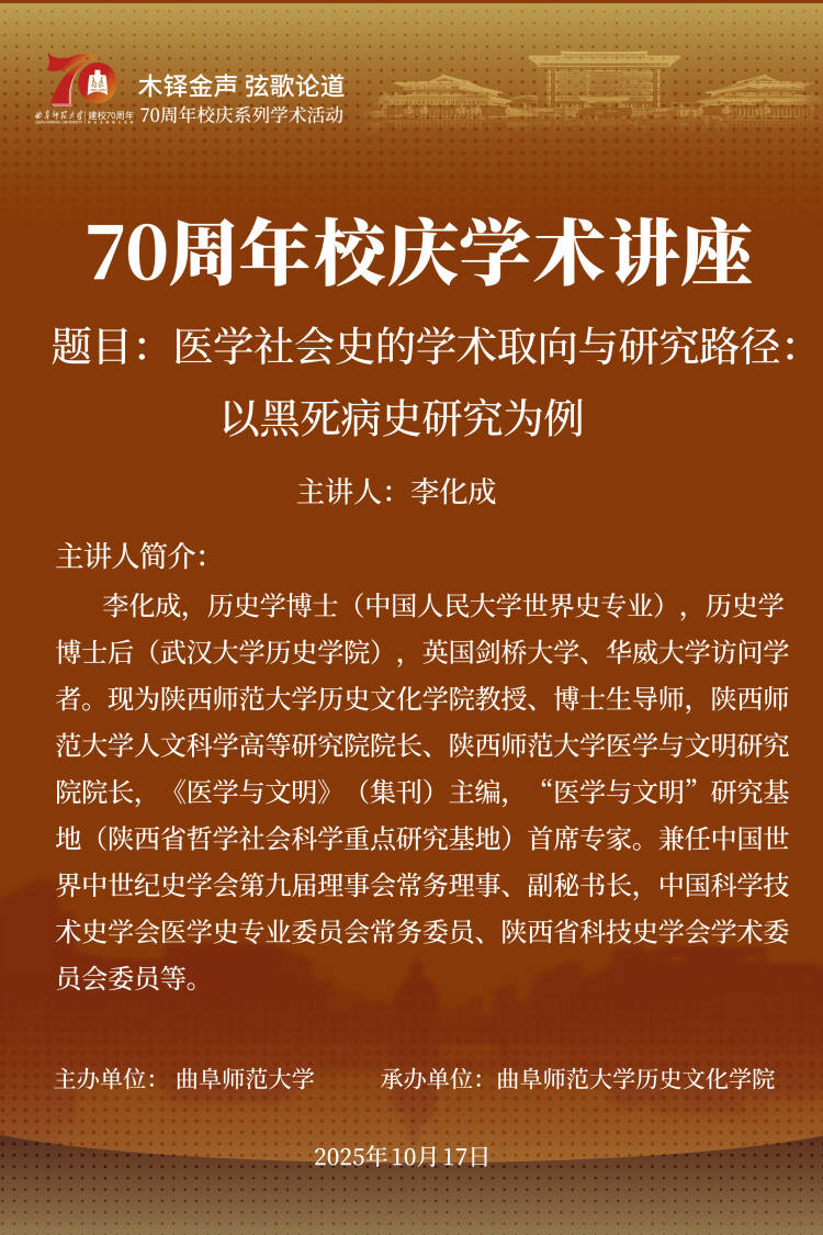 一流学科和交叉研究篇(之三十八)|李化成:医学社会史的学术取向与研究路径:以黑死病史研究为例