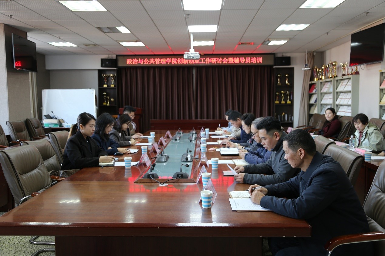曲阜师大政治与公共管理学院讯 近日,政治与公共管理学院召开创新创业工作研讨会暨辅导员培训会,特别邀请浙江工业大学生物工程学院党委副书记、纪委书记金鑫一行。学院党委书记卢瑞霞、副书记张忠凯、副院长林士俊、全体辅导员及部分专业教师代表参会。