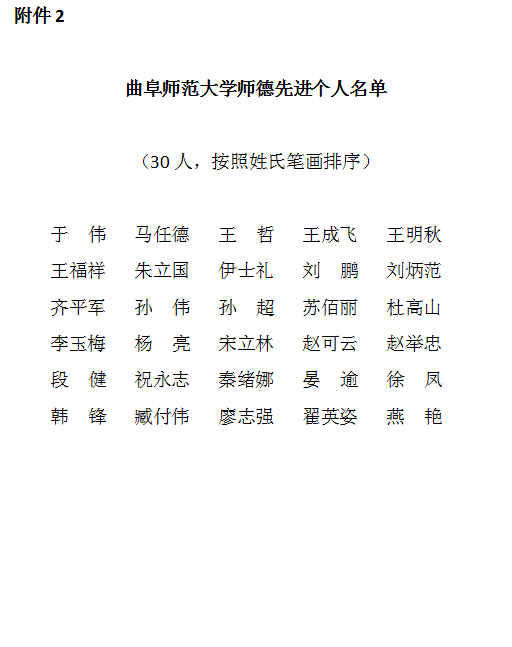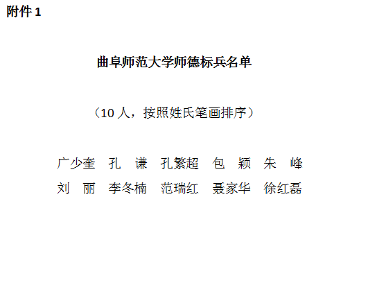 根据《中共曲阜师范大学委员会师德标兵、师德先进个人评选办法》和《曲阜师范大学关于评选2020年师德标兵、师德先进个人的通知》要求,按照评选程序,经过基层党委推荐和学校评审委员会的评选,推选出10名师德标兵和30名师德先进个人的建议名单,现予公示,请予监督。