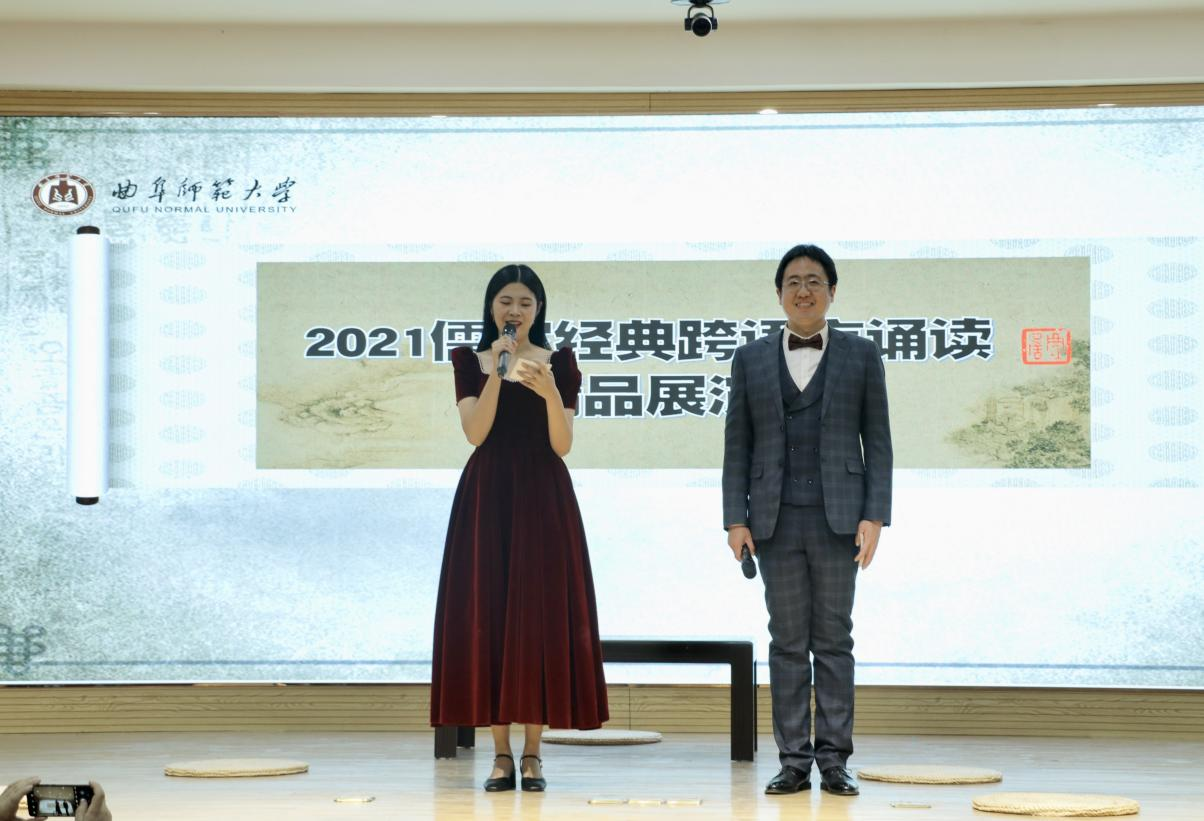 曲阜师大新闻中心讯 为更好地展现蕴含中国智慧的优秀儒家文化,12月22日下午,曲阜师范大学国家语言文字推广基地和文学院共同举办“2021儒家经典跨语言诵读大赛”获奖作品展演。校团委书记孔轶众、文学院党委书记左兴才以及各组指导教师和文学院各年级本科生观看了此次展演。本次活动由文学院高原老师和王聪博士主持。
