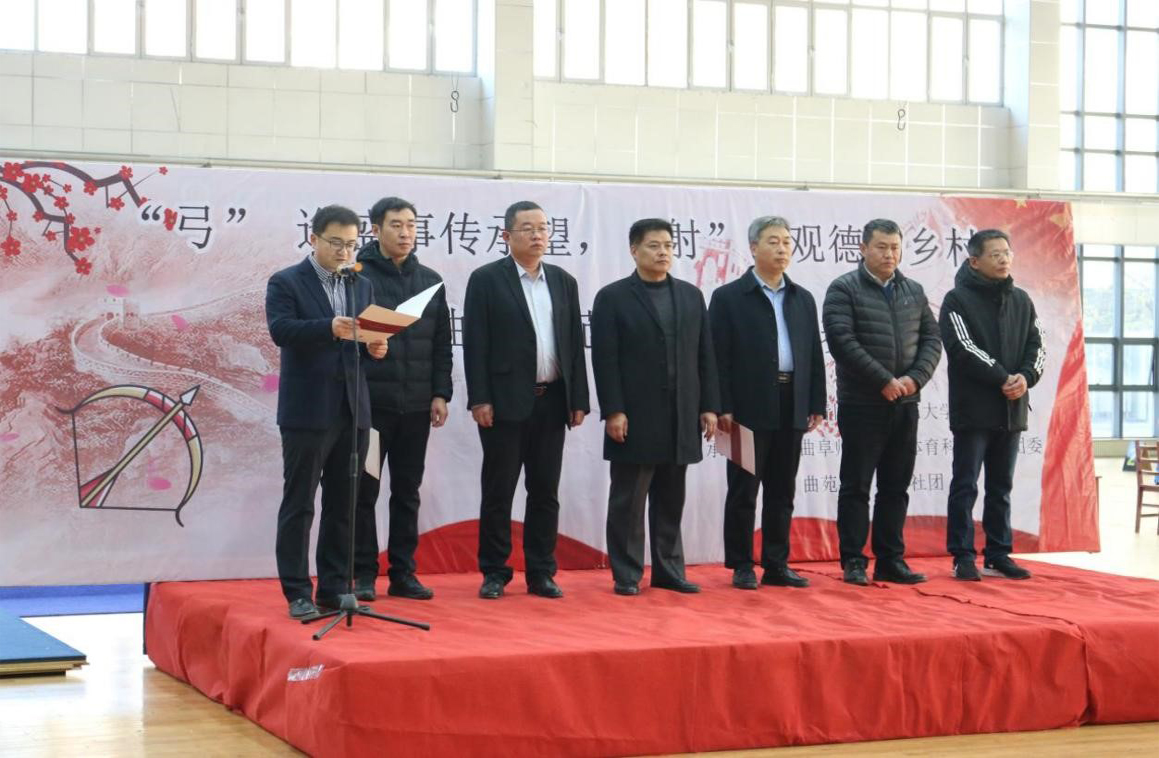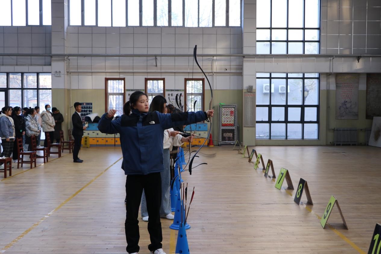 曲阜师大新闻中心讯 为激发同学们对传统射艺文化的兴趣,挖掘射艺的历史渊源,进而增强同学们对乡村文化的了解,促进乡村文化赓续发展,12月4日,“弓”逢盛世传承望,“射”以观德助乡村——曲阜师范大学射艺比赛在体育科学学院篮球馆举办。本次比赛由体育科学学院承办,团委书记孔轶众,学生工作处副处长毛永正,体育学部党委书记刘敏,体育学部主任、体育科学学院院长姜付高,体育学部党委副书记马振华,体育科学学院副院长伊超,射艺指导教师刘建国等现场指导。体育学部党委副书记马振华主持本次比赛开幕式。